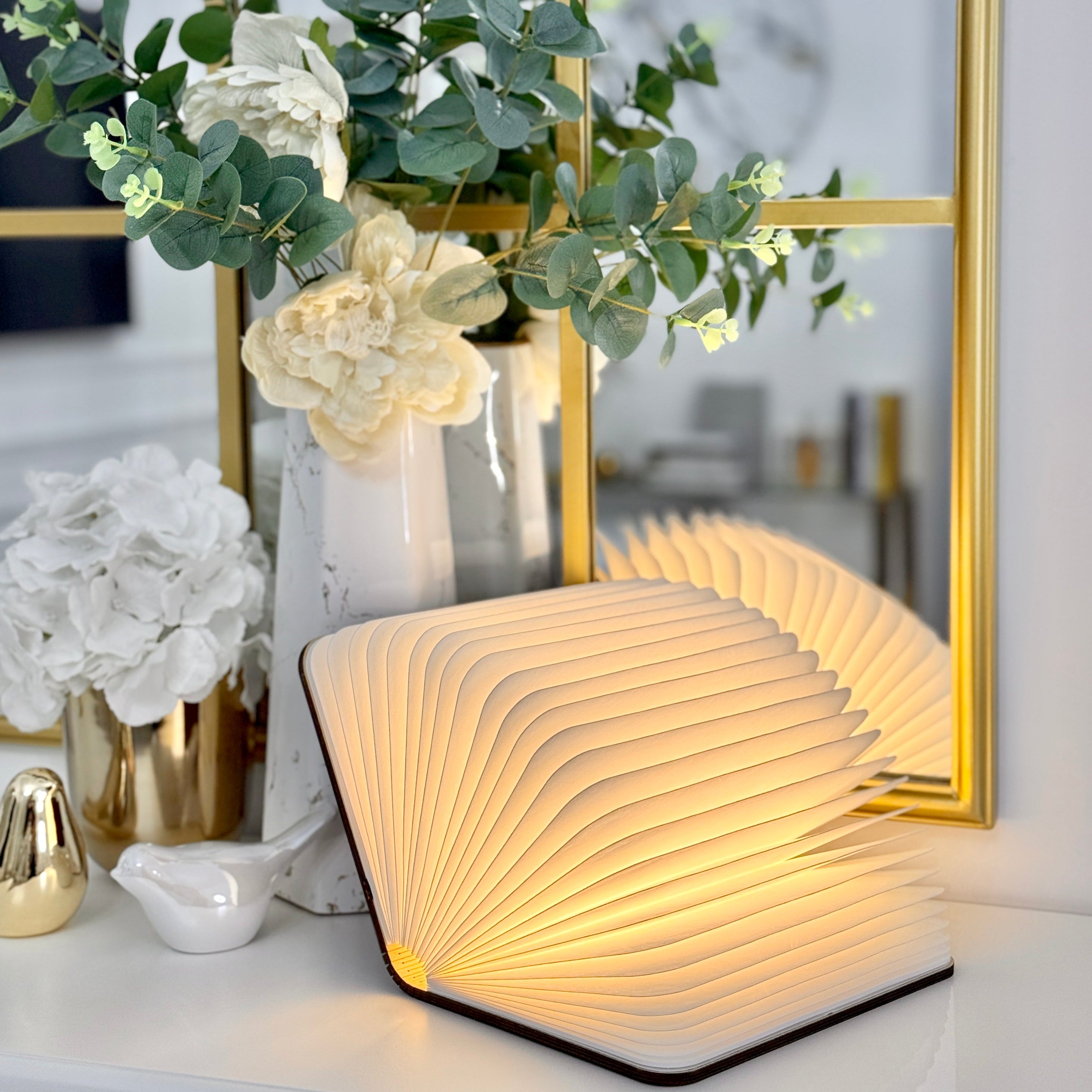 Semplice e intuitivo – Basta aprire il libro e la luce si accende istantaneamente, creando un’atmosfera raffinata e suggestiva.Versatile e sofisticato – Perfetto per ogni spazio: soggiorno, sala da pranzo, ufficio o camera da letto.