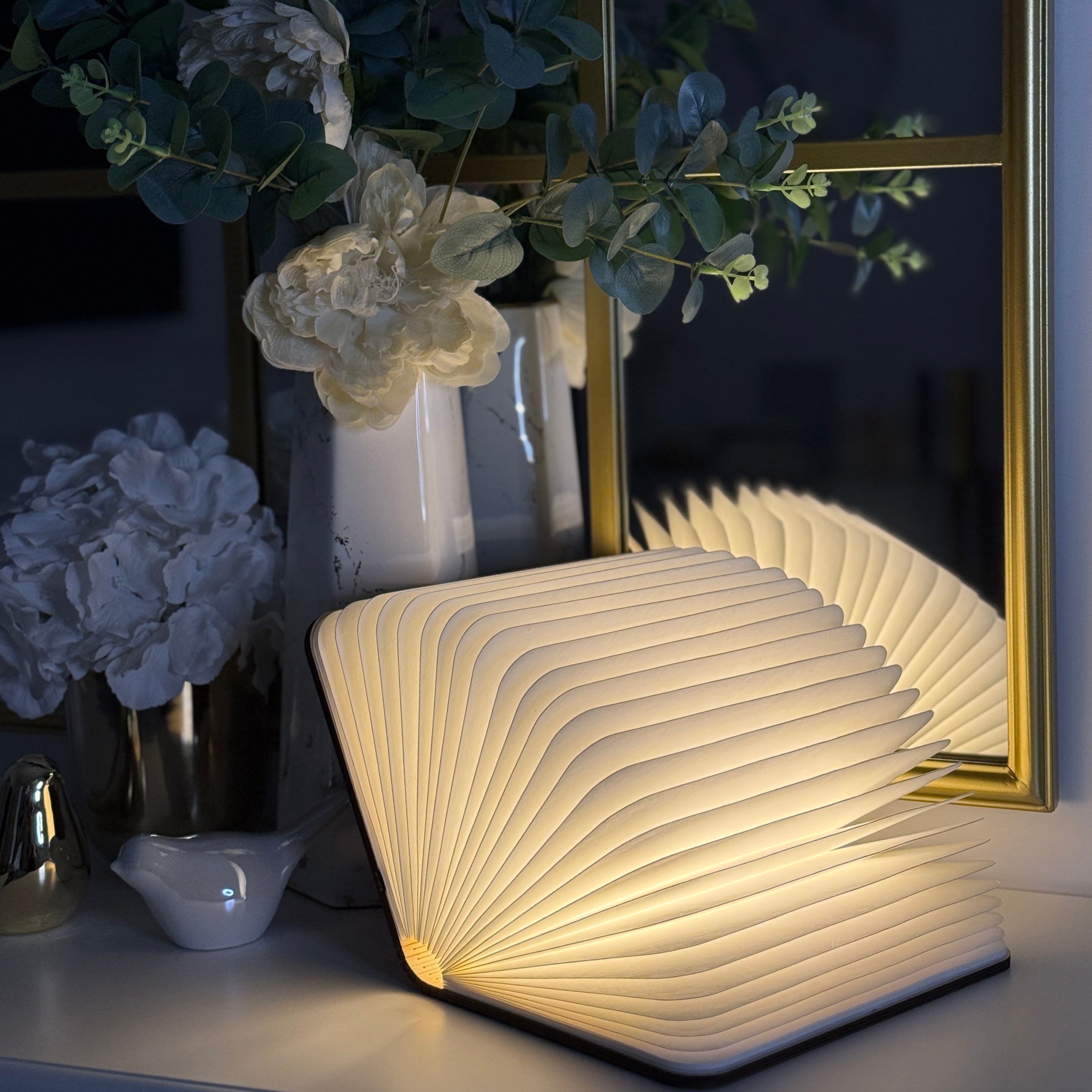 Apri il libro e lascia che una luce calda e avvolgente illumini il tuo spazio. Un perfetto equilibrio tra arte e funzionalità.